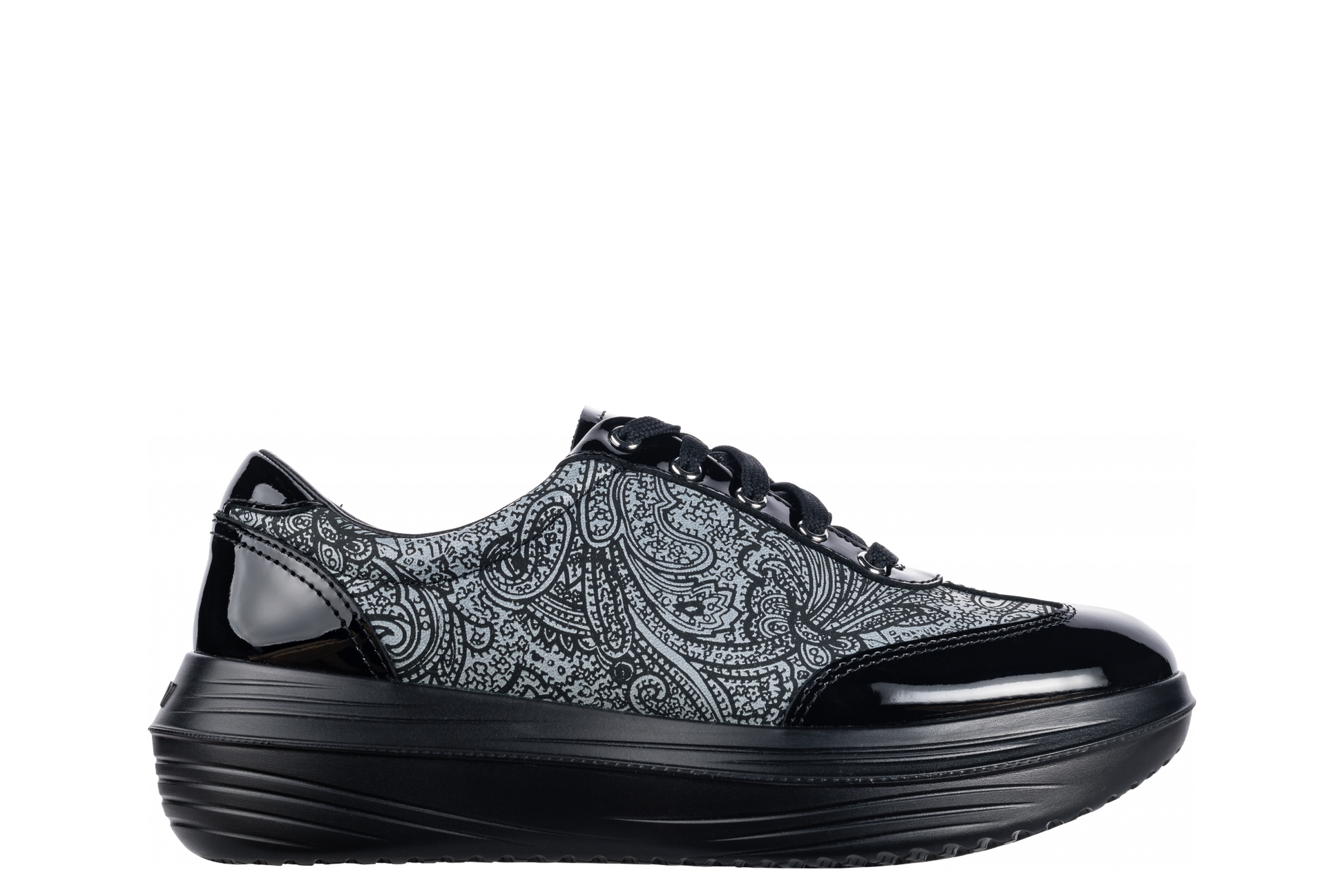 Das einzigartige Ornamenten-Muster in Kombination mit dem Lack-Leder macht den kyBoot Bern Onyx zu einem speziell eleganten Schuh. In seiner modischen Art lässt er sich perfekt zu vielen Kleidungsstilen kombinieren. Mit dem kyBoot Bern Onyx begleitet Sie ein Glanzpunkt in Ihrem Alltag.